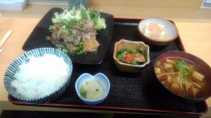 光町の居酒屋で、ここは夜結構面白いものを飲ませてもらえそう。昼のランチに990円のステーキ定食を頼んだ。