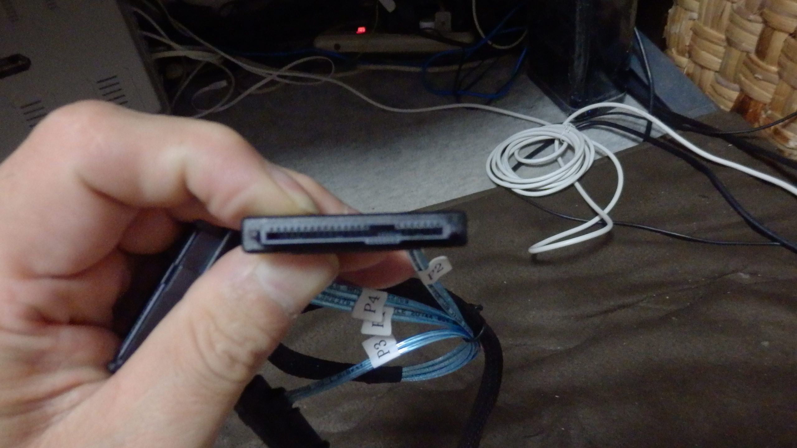 ドライブは、10TBのNL-SASが4台で40TB SASのコネクターはSATAと互換性がないので、刺さらない。SASコントローラー自体は、SAS/SATAも両方使えるだけど。