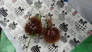 大きな栗の木が折れたので、たくさん取れなかったけど栗を収穫した。