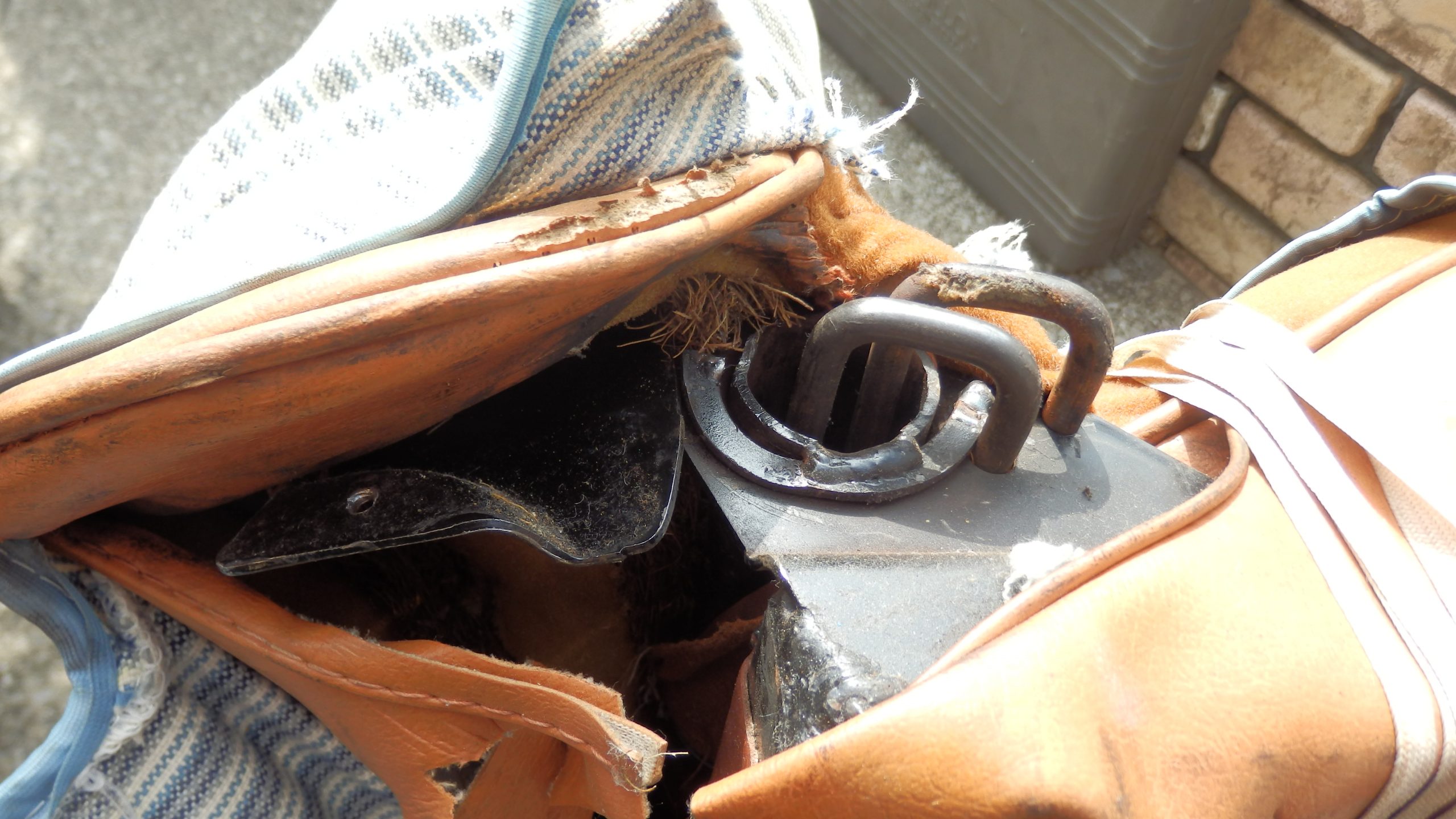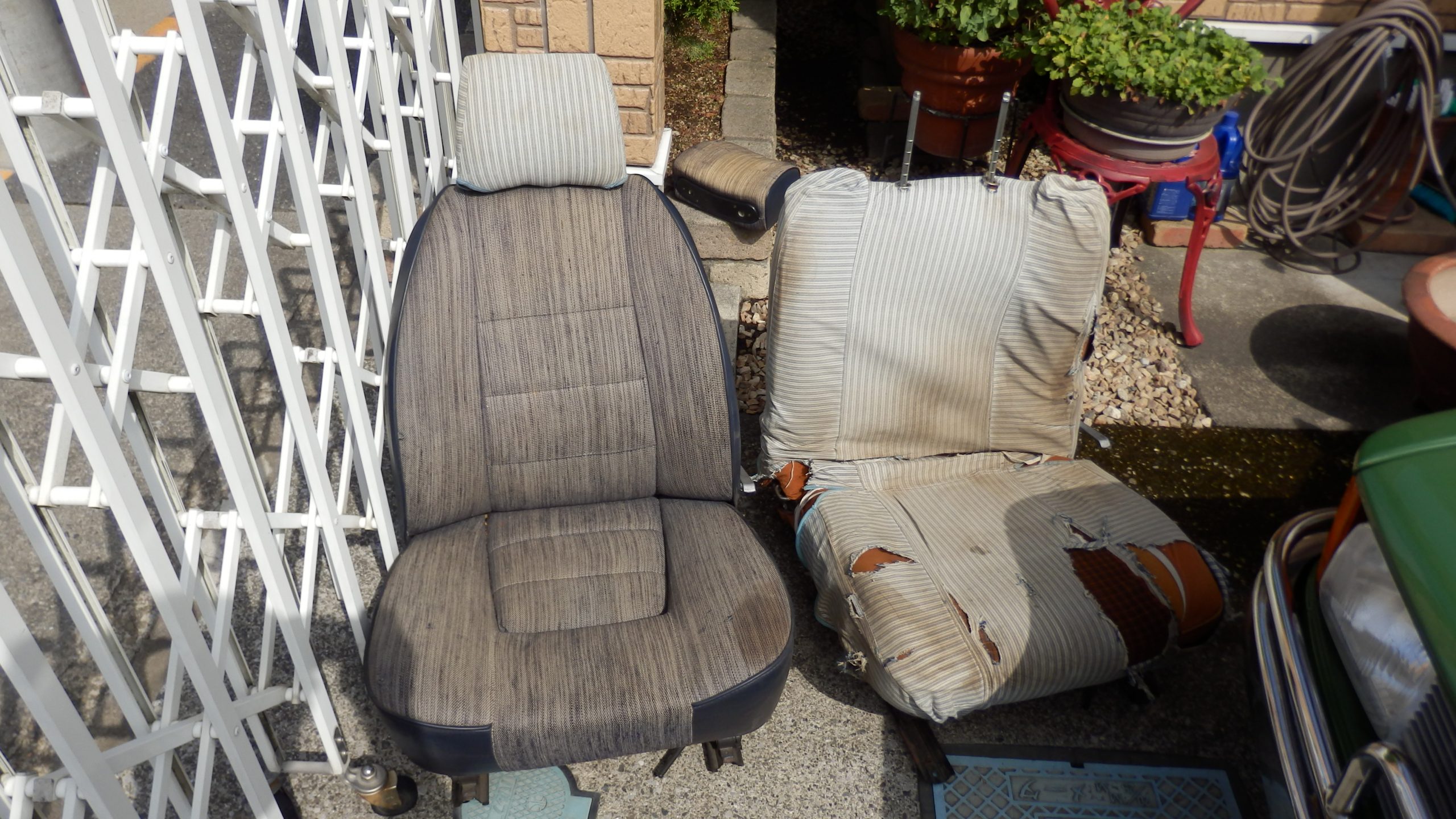 これも車検でひやひやで通した箇所で、運転席のフレームが折れてぐらぐらになっている。うちのINNOCENTI120SLは2シーターしか使わないので、後部座席が抑えるので、特に不便を感じてなかった。しかし、車検の時は後部座席を展開するように指示されるので、ぐらぐらがばれると通らないとのこと。最近座席のチェックも厳しいらしい。だいぶ前(3回前くらいの車検)から駄目だっただけどこの部分の指摘もなかったけど、ひやひやだっということで対策を検討することにした。まあ、対策と言ってもデトミニの椅子があるので、それに交換するだけだけどねえ。外した座席は色違いなので、今後修理してもらう予定。