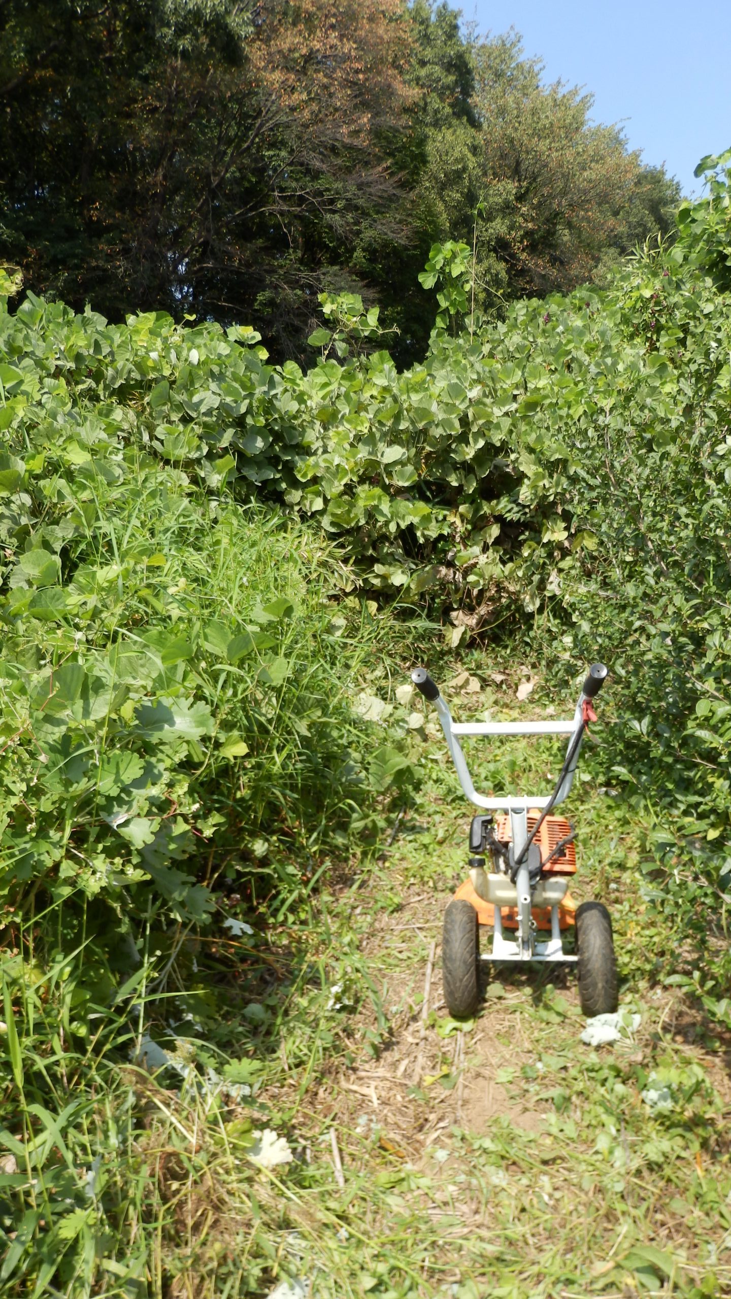 とりあえず、隣の境界部分を刈って、家のお茶の木にかぶさっている蔦を除去した。