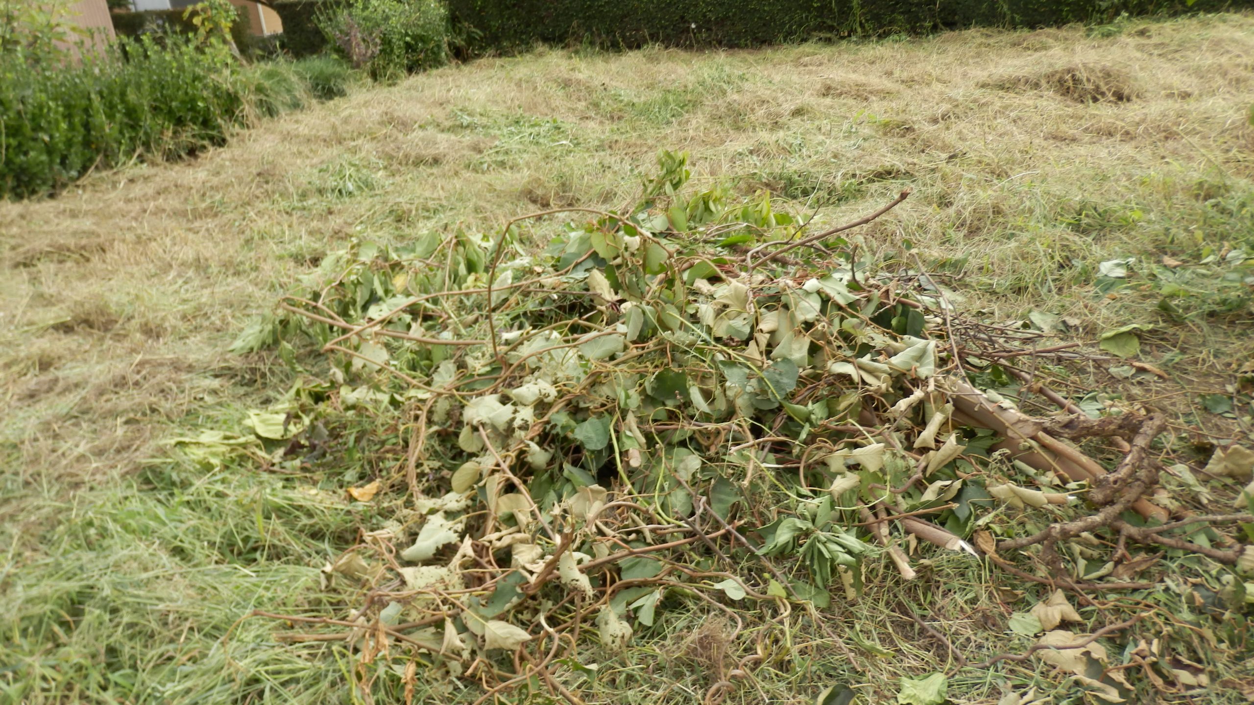 背負子の草刈り機が完調だともう少しHATIさんも楽に草を刈れると思いますが、タスキ掛けの普通の草刈り機では、腰を痛めてしまいそうだったので、ミツさんに修理依頼かな。