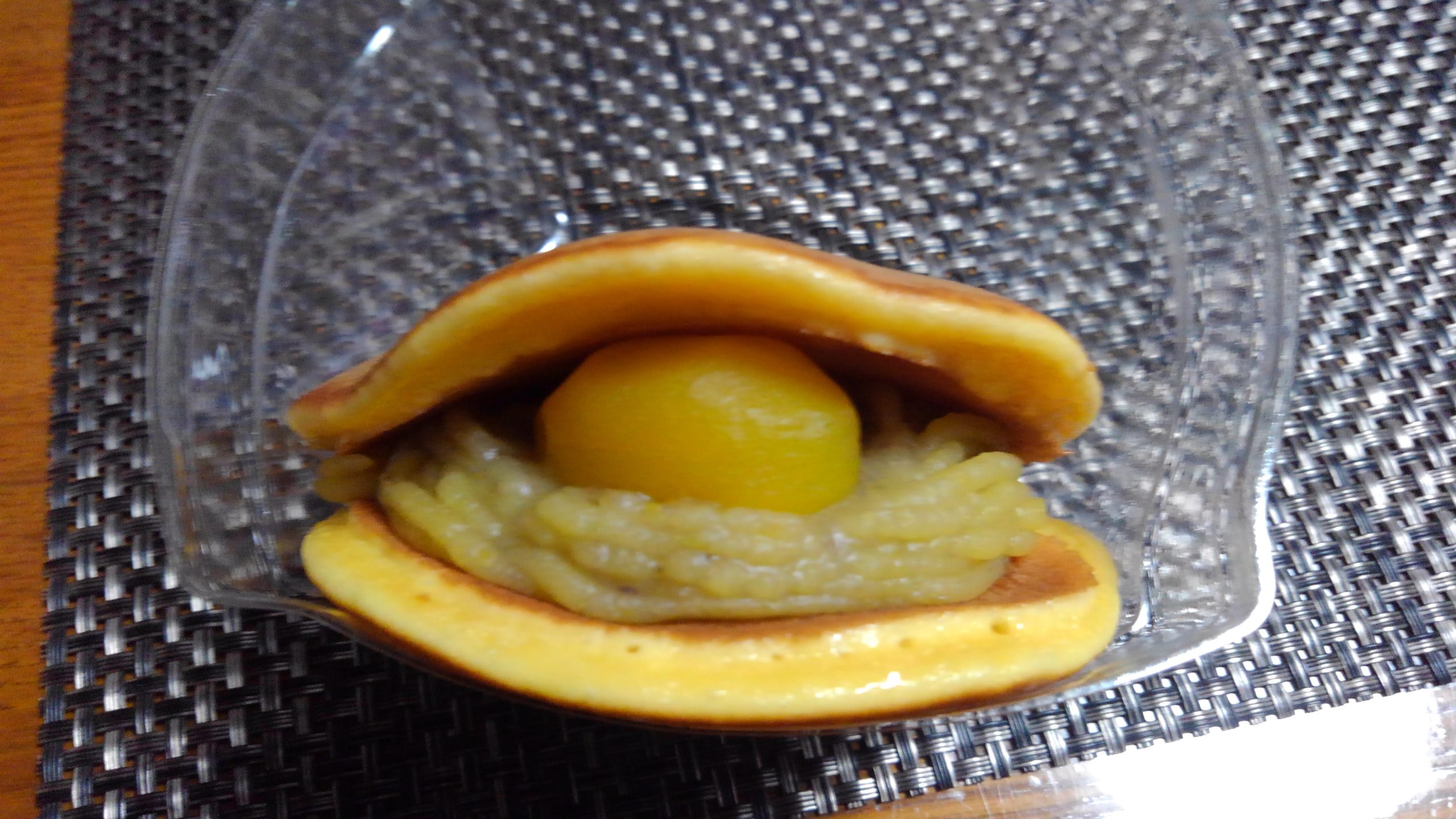 見た目はどら焼きなんだけど、栗のクリームが入っているけど、中にあんこがあるので、どら焼きの派生したもの。でも味は全然違う。