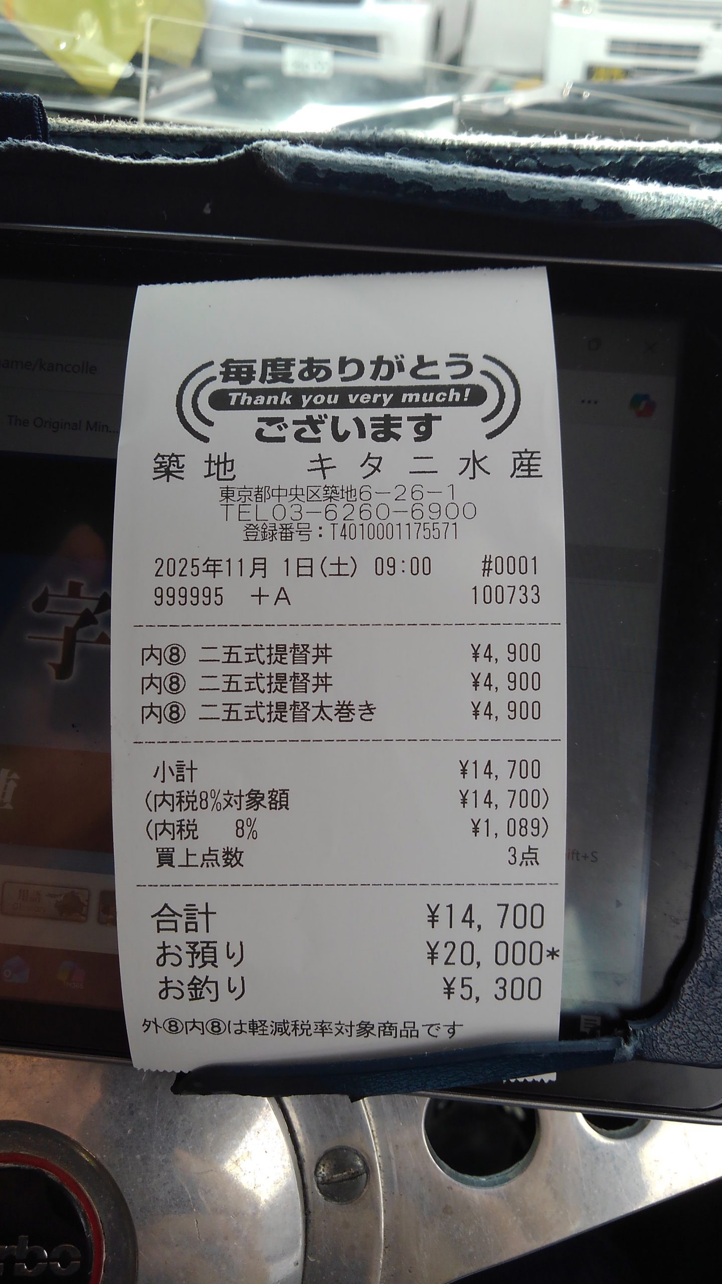 キタニ水産の艦これコラボが11/1から始まると聞いたので初日に行ってきた。この建屋は市場が閉まっているときは閉まってしまうので日曜日に行っても開いていないからねえ。都道304号側から入った方が、キタニ水産は近いし、待機列もこちら側なのでこの建屋から入場する方が良い。