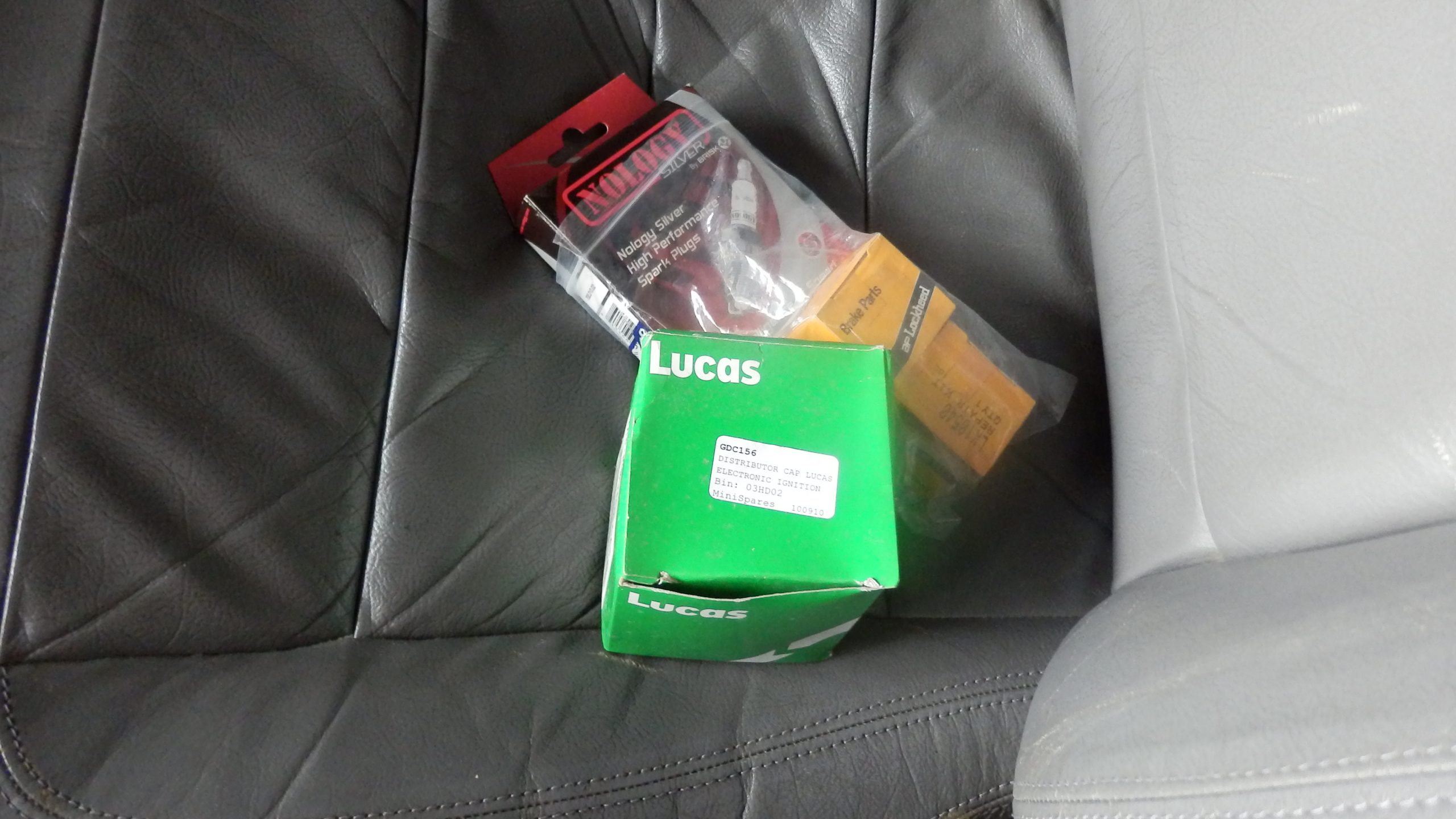 12月に車検だったのでみつさんに頼もうと思って交換パーツを用意した。前回点火系が怪しかったので、そういえばデスビとローターを交換していなかったので交換してもらうと思っていた。しかし、みつさんが入院してしまったので、点火系が怪しかった問題の解決を経験のないMINI屋さんに頼むのが気が引けたので、自分で交換することにした。結果的には正解だった。