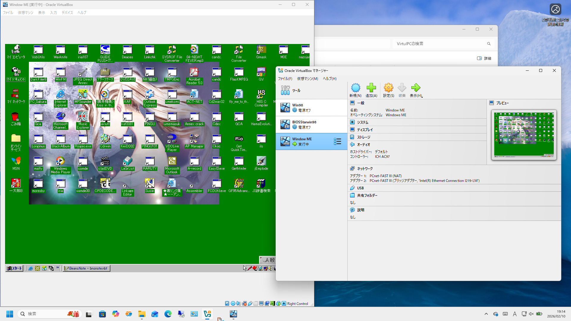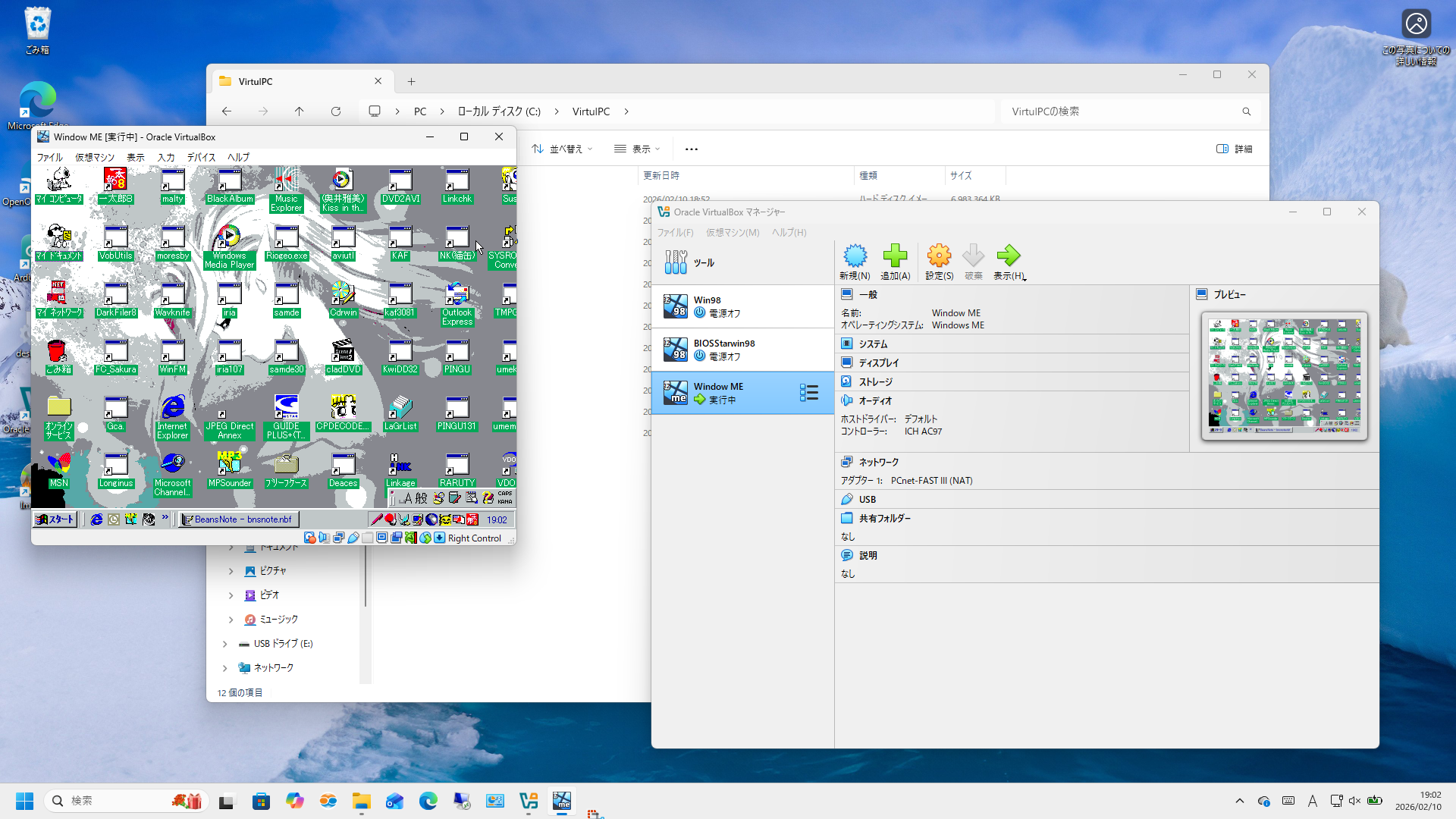 VirtualBoxでWindows Millenniumを動かした。