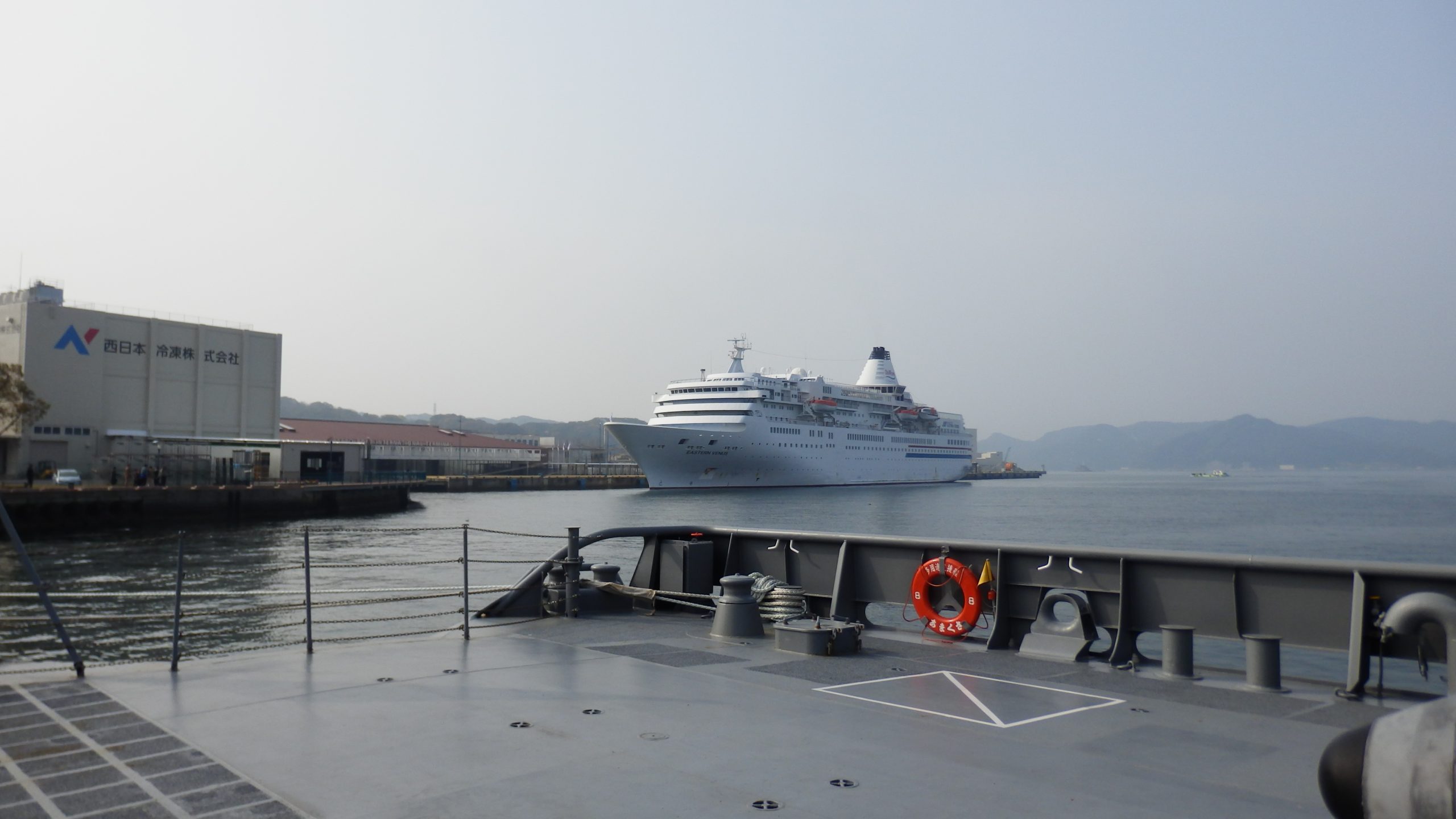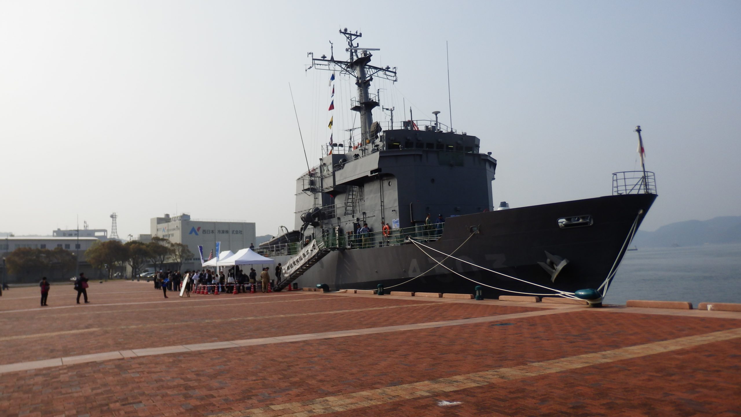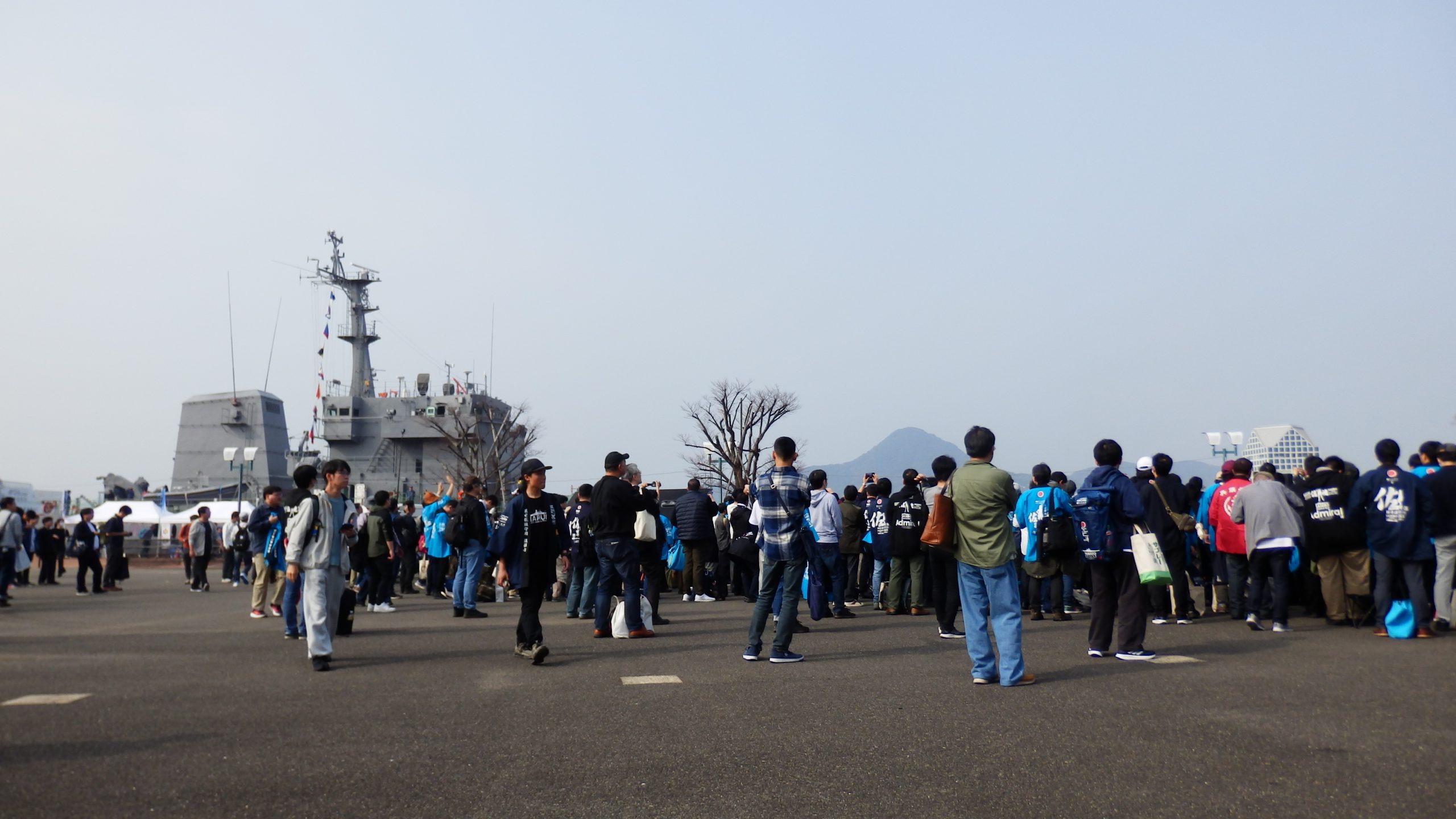 リアル提督登場と、音楽隊を見やすくするために参加提督が全員座るハプニングもあり、なかなかアットホームは音楽会になった。艦娘音頭は、フレッチャー役宇民さんが音頭初登場、タニベさん、艦娘遊撃隊の榧、杉 、樫の3人が登壇されてモーニング艦娘音頭を踊った。最初はタニベさんの歌唱で、アンコールで宇民さん歌唱となっていた。私は、スタンプラリーの拡張Bと、空路戦略機動で、チケットをもらっていなかったので、タニべさんの回を終えたら抜けて、拡張Bに向かった。さらに海上自衛隊全面協力なので、多用途支援艦あまくさの見学会も開かれていたので、中を見させてもらった。